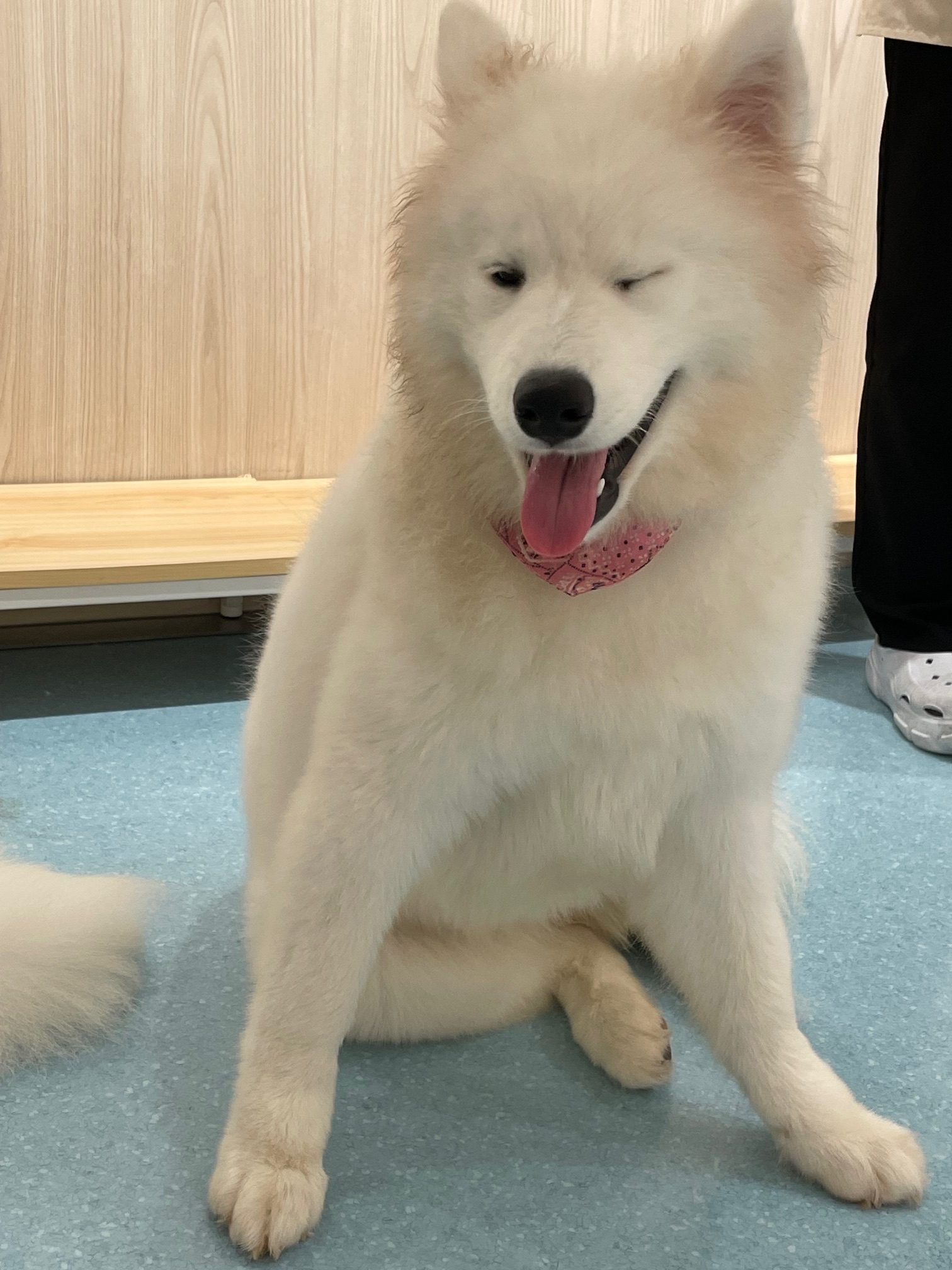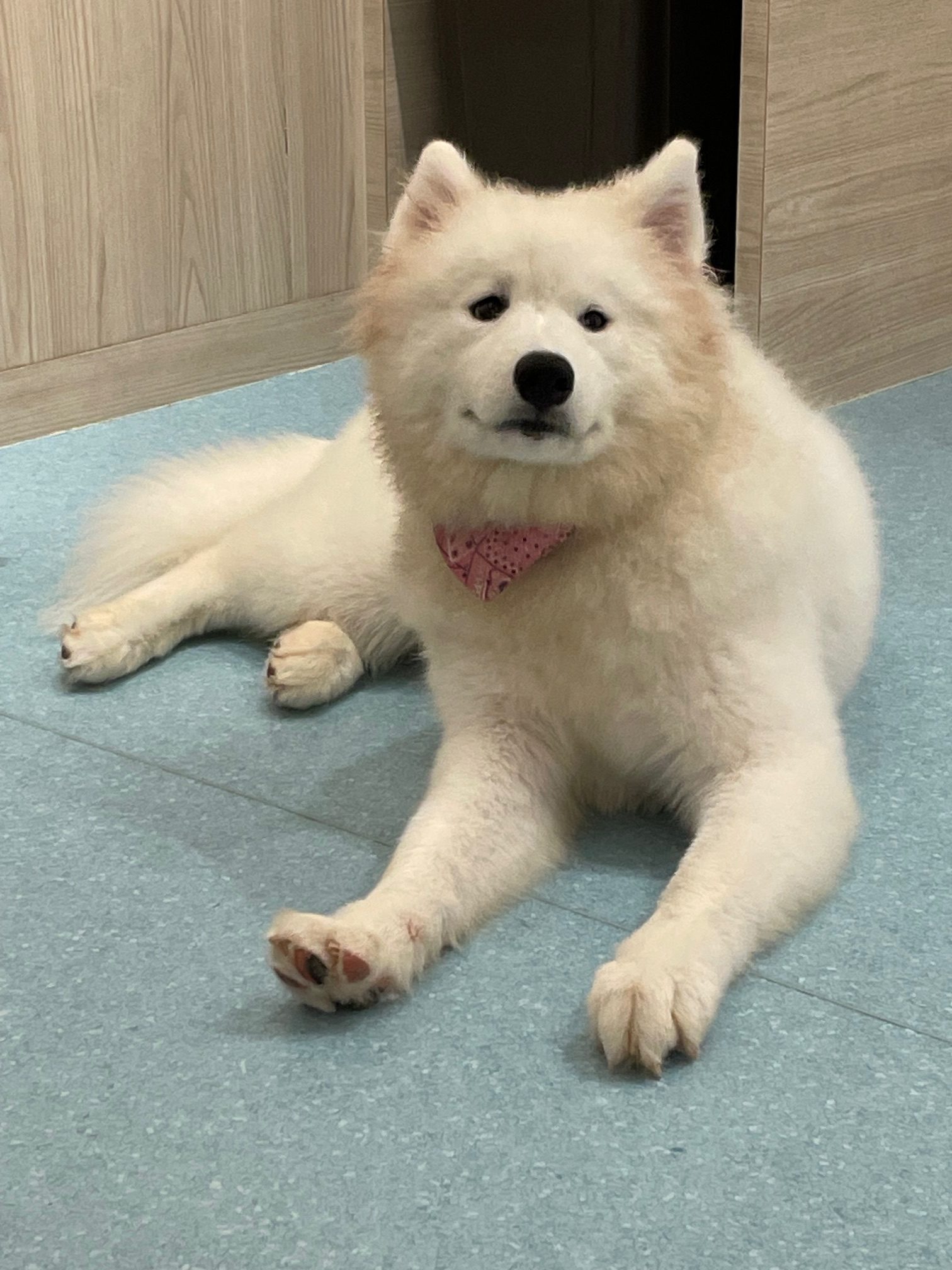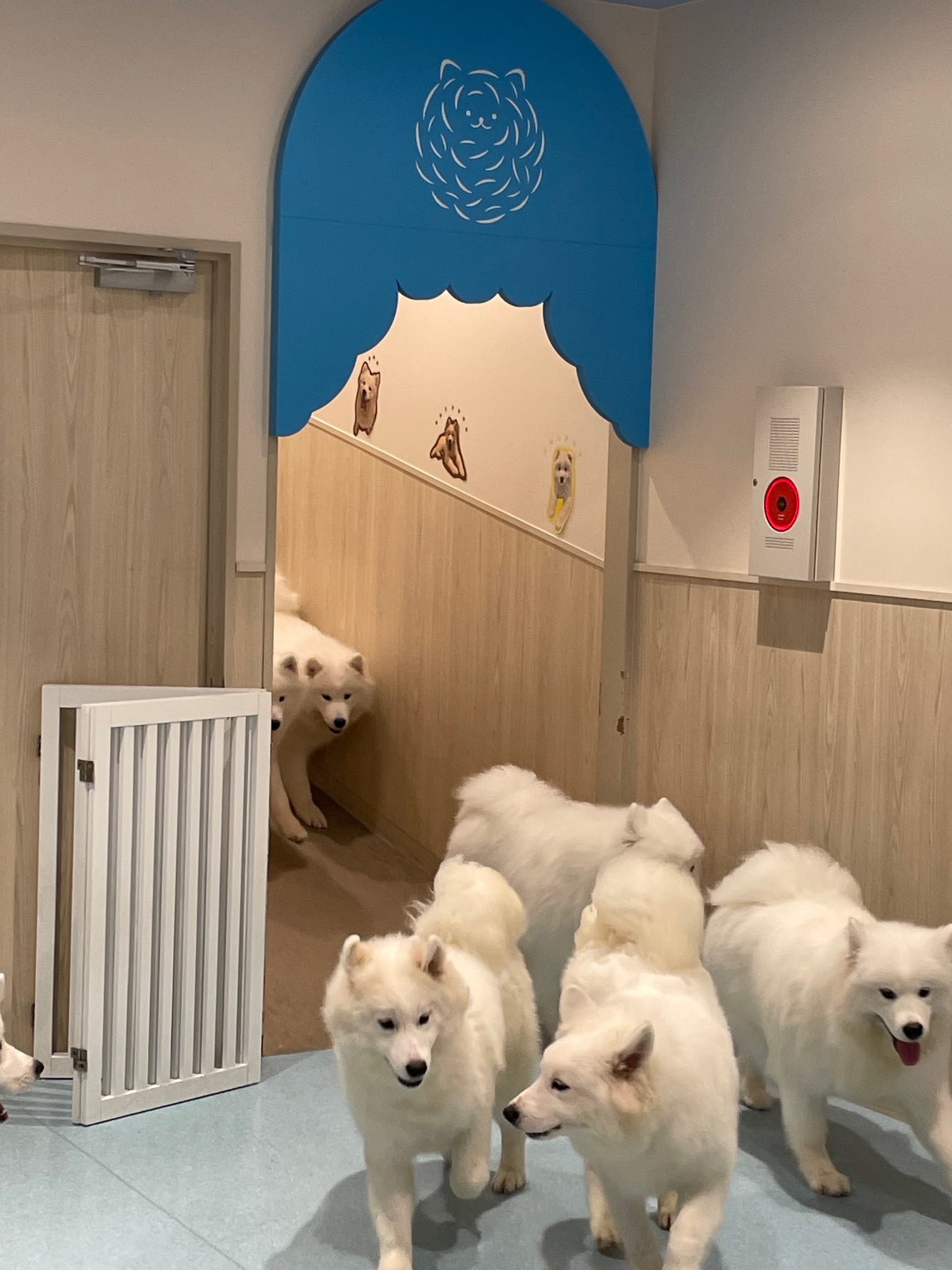 それでも何とか入れまして控室をドキドキしながら待っていたらたくさんのサモエドがなだれ込んできました!