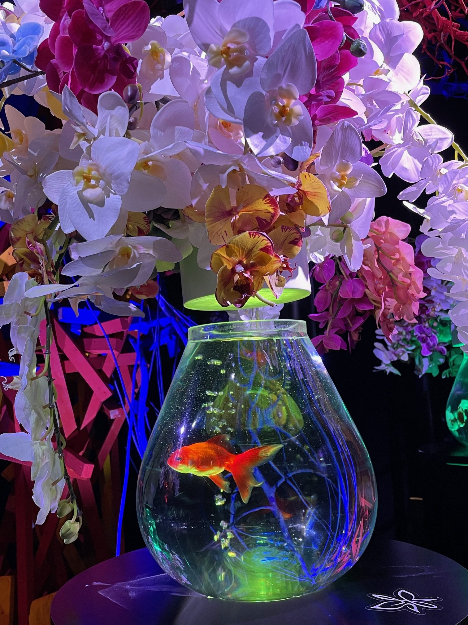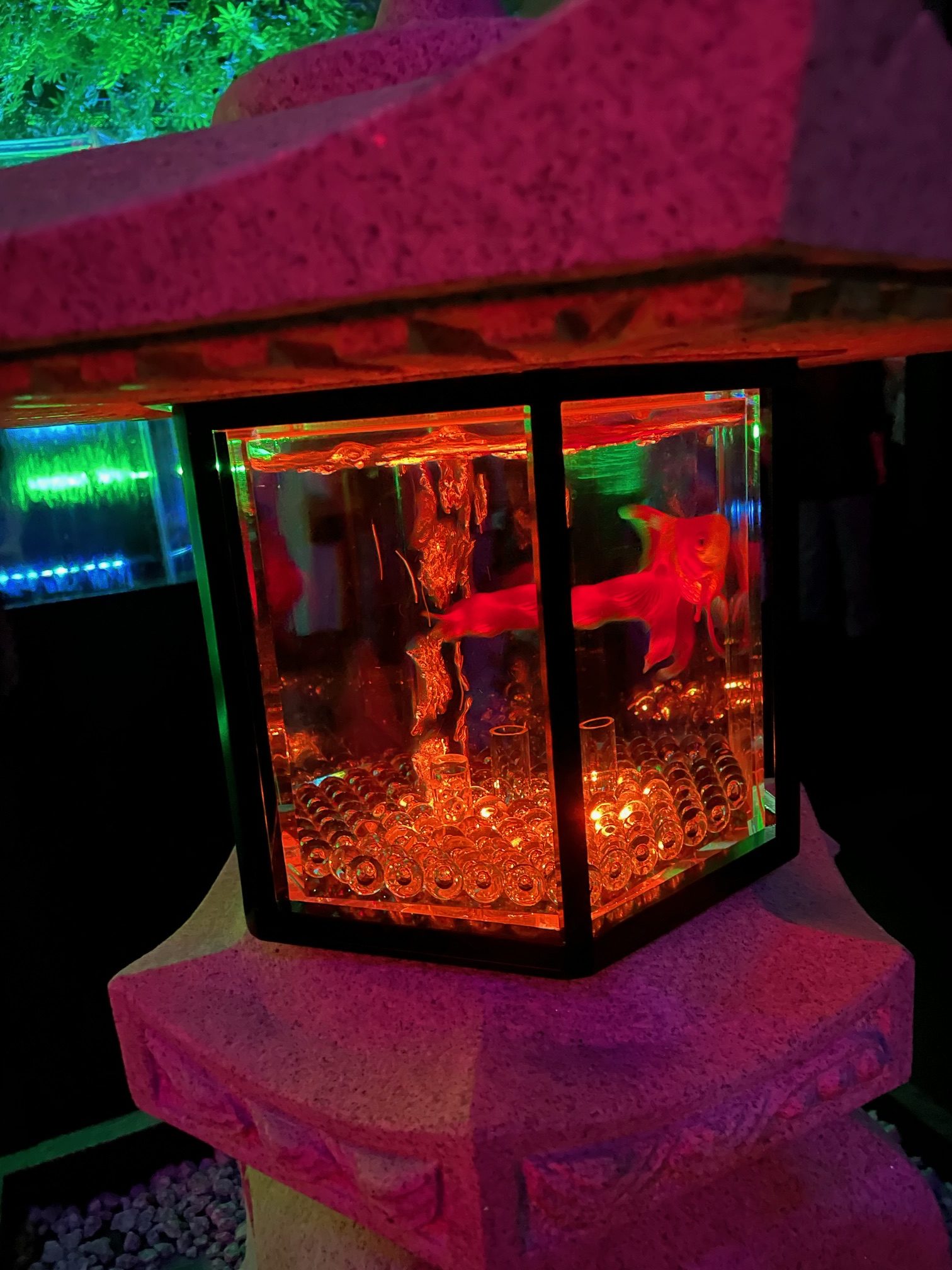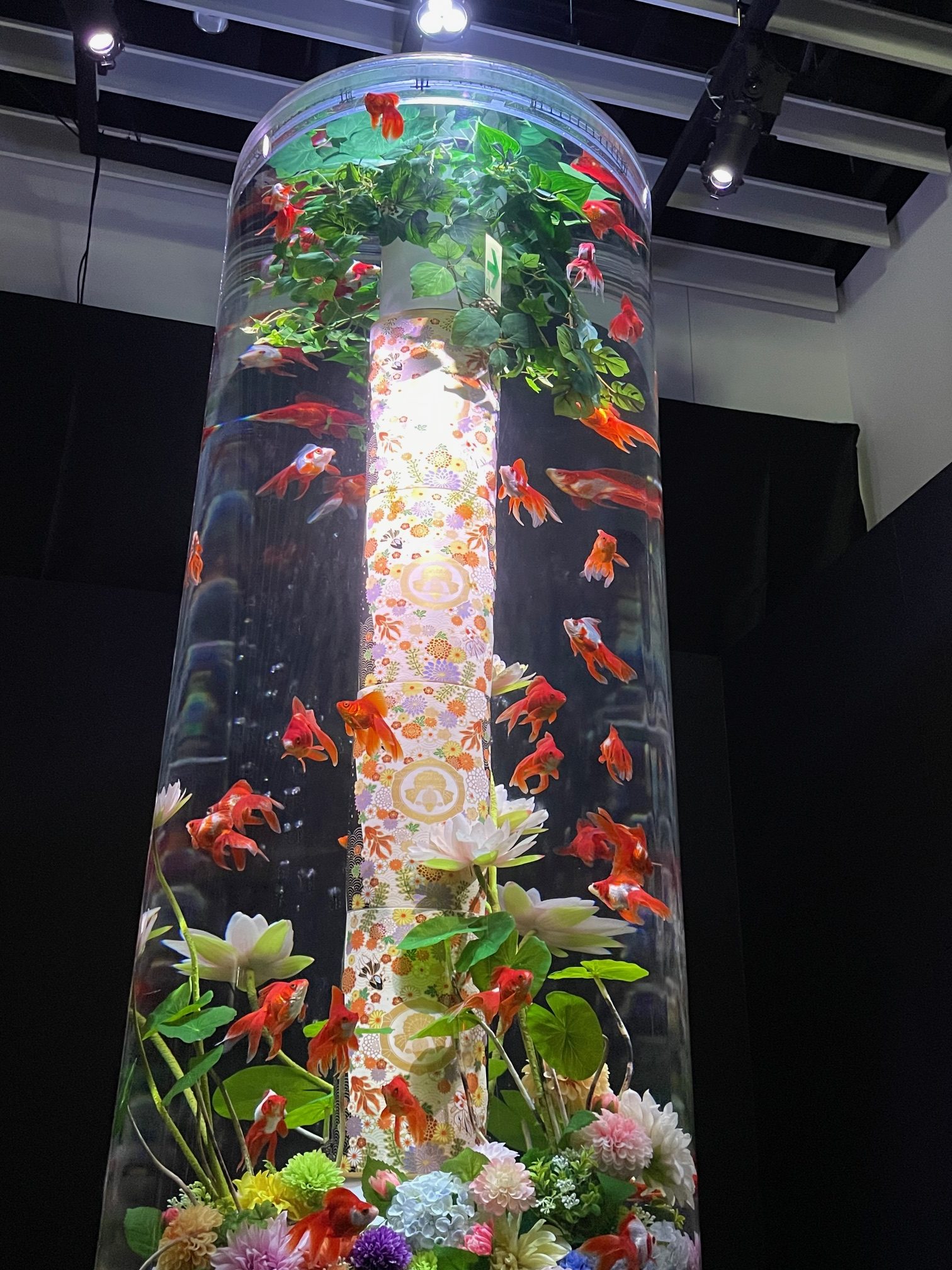 音楽、計算された照明、そこに生きた金魚、とても素敵な芸術作品でした。